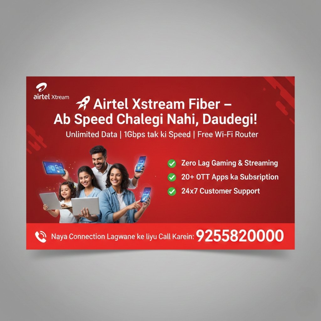 Sonipat mein payein sabse tez aur bharosemand internet! Airtel Xstream Fiber Sonipat ke saath enjoy karein 1Gbps tak ki speed, unlimited data, aur fr…